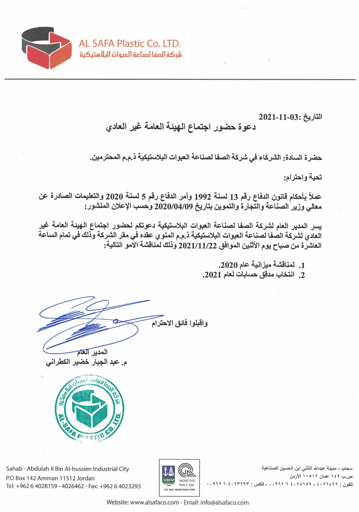 دعوة حضور اجتماع الهيئة العامة غير العادي