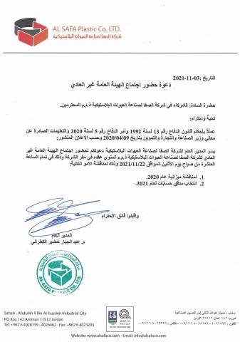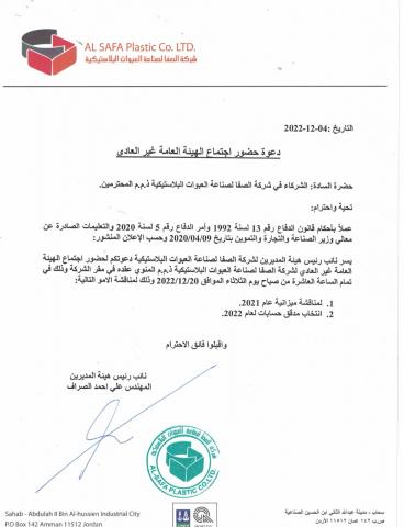 2. دعوة حضور اجتماع الهيئة العامة غير العادي